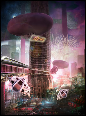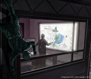 Este proceso es similar al anterior pero con la particularidad de que esta vez no hemos hecho ningún dibujo inicial. Directamente hemos empezado esbozando el escenario y a continuación partiendo de una silueta hemos ido definiendo a nuestro personaje.